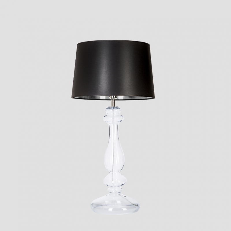 Podstawa lampy wykonana ze szkła ręcznie formowanego, bezbarwnego.