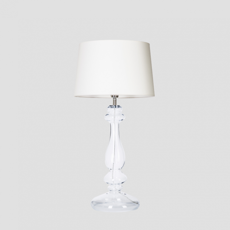 Podstawa lampy wykonana ze szkła bezbarwnego, ręcznie formowanego.