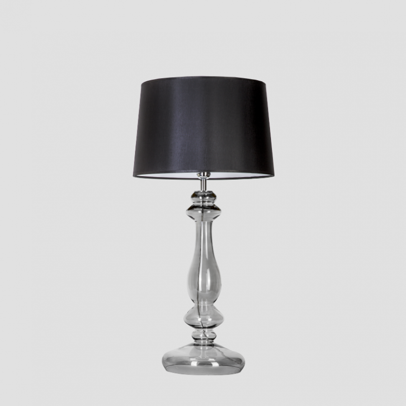 Podstawa lampy wykonana ze szkła bezbarwnego, ręcznie formowanego. Następnie malowana błyszczącą, czarną, transparentną farbą.