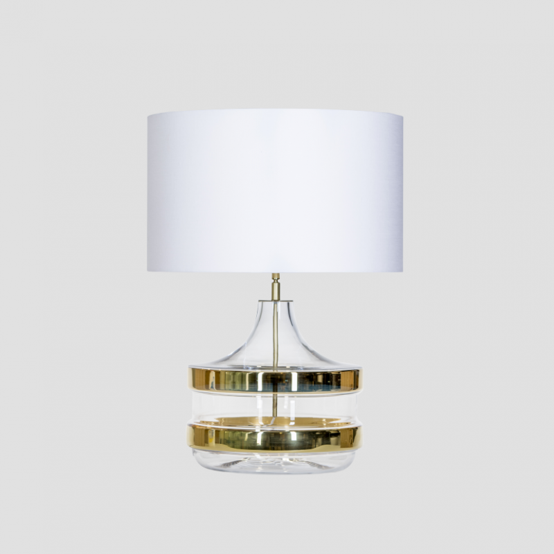 Opis produktu: szkło ręczne formowane, bezbarwne, pasy malowane na złoto