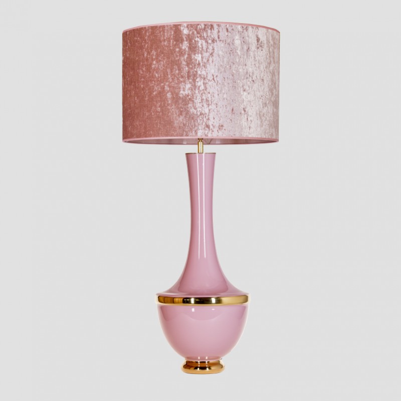 Troya Rouge z różowym welurowym abażurem wykonana ręcznie w polskiej hucie szkła idealnie sprawdzi się we wnętrzach klasycznych, ale i nowoczesnych czy eklektycznych.