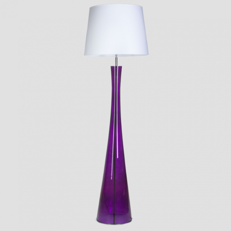 Podstawa lampy wykonana z bezbarwnego, ręcznie formowanego szkła, a następnie malowana transparentną, fioletową farbą.