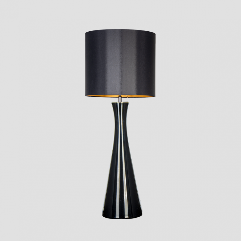 Podstawa lampy wykonana z bezbarwnego, ręcznie formowanego szkła, a następnie malowana czarną farbą.