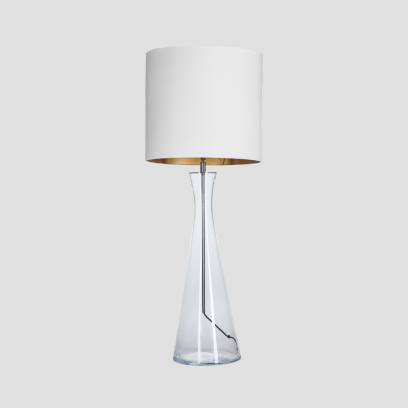 Podstawa lampy wykonana z bezbarwnego, ręcznie formowanego szkła.