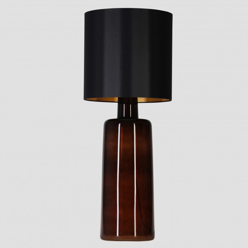 Lampa z ręcznie formowanego transparentnego szkła pokryta czekoladową powłoką. Osprzęt metalowy w kolorze złotym, kabel z transparentnego pcv. Zdjęcia mają charakter poglądowy – różnica między kolorem produktu na zdjęciach, a odcieniem produktu gotowego może wynikać z ustawień ekranu komputera czy monitora urządzeń mobilnych.