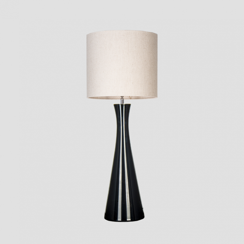 Podstawa lampy wykonana z bezbarwnego, ręcznie formowanego szkła, a następnie malowana czarną farbą.