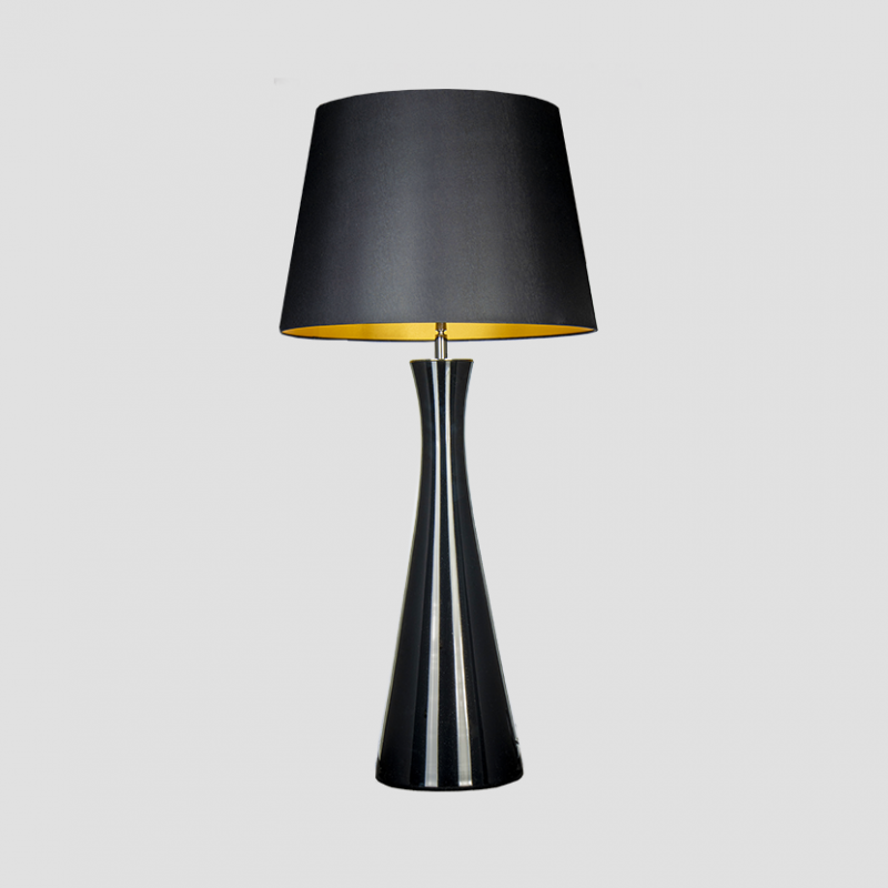Podstawa lampy wykonana z bezbarwnego, ręcznie formowanego szkła, a następnie malowana czarną farbą.