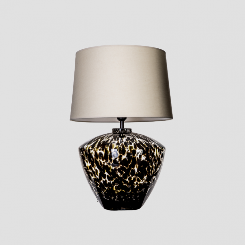 Podstawa lampy wykonana jest z bezbarwnego i czarnego szkła, ręcznie formowanego.