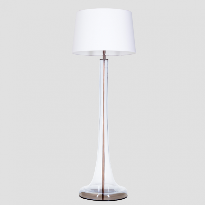 Podstawa lampy wykonana ze szkła bezbarwnego, ręcznie formowanego. Elementy metalowa są malowane na kolor miedziany.