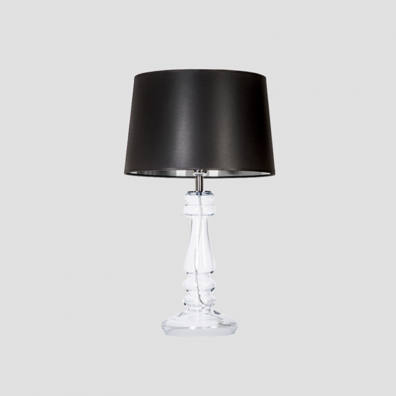Podstawa lampy wykonana z bezbarwnego szkła, ręcznie formowanego.